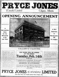 The Pryce Jones department store opens to the Calgary public on valentines day to much fanfare